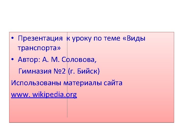 Answer the questions: 1. Which kind of transport do you know? 2. Which kind of transport do you usually use? 3. Which kind of transport do you like best of all ?