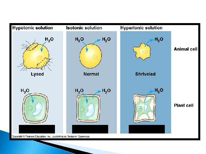 Adding a Salt Solution to a Cell • • • Concentration of water is higher inside cell Water flows out of cell High –> Low Concentration Cell’s cytoplasm shrinks!!!