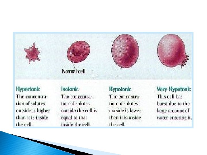 Adding Distilled (Pure) Water to a Cell • Concentration of water is higher outside the cell • Water flows in the cell • Cell bursts/ruptures