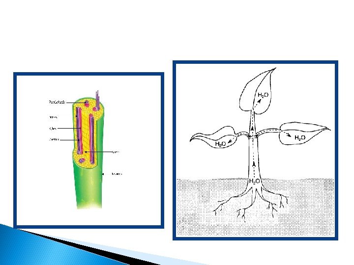 Transport in Plants: • Vascular tissue- • Xylem-transports water • Phloem- transports food • Roots- • Provide anchorage into soil • Absorb water