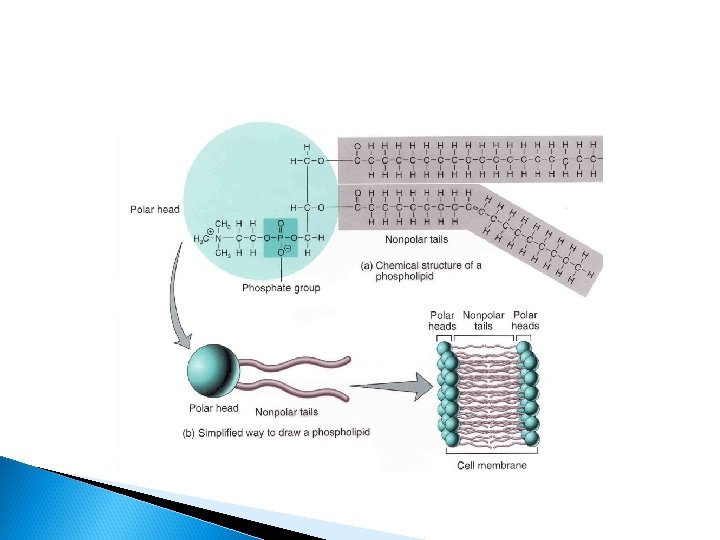 Phospholipids form 2 layers Phosphate “heads” are hydrophilic ◦ They can touch water outside and inside (cytoplasm) the cell Lipid “tails” are hydrophobic ◦ They face inward to avoid touching water
