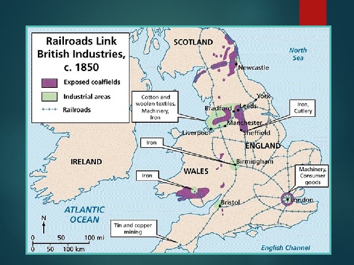 Transportation In the early 1800 s George Stephenson developed steampowered locomotives to pull carts along rails. Railroads increased trade and industry, and connected Britain from one end to the other