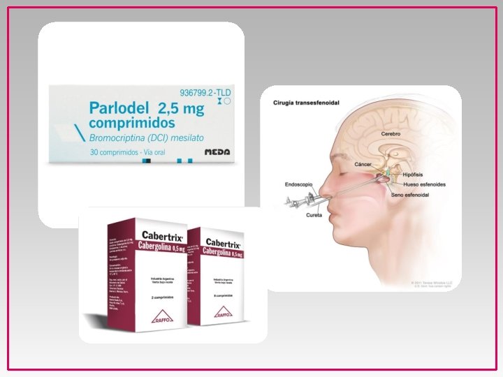 DIAGNÓSTICO TRATAMIENTO • Historia clínica • Análisis de sangre con determinación de algunas hormonas que están involucradas en la secreción mamaria como es el caso de la hormona prolactina, y de otras como las hormonas tiroideas • Resonancia magnética, radiografías de cráneo o campimetrías visuales. • La administración de Bromocriptina suele reducir la prolactina sérica y la masa tumoral, suprimiendo además la galactorrea y reanudando la líbido, las menstruaciones y la fertilidad (90%). • Irá encaminado a corregir la causa que haya determinado la galactorrea