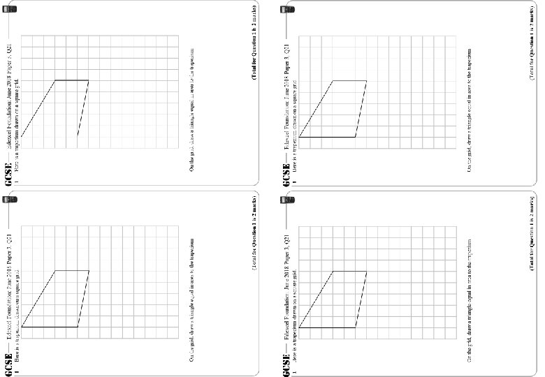 GCSE 1 Edexcel Foundation: June 2018 Paper 3, Q 21 Here is a trapezium drawn on a square grid. On the grid, draw a triangle equal in area to the trapezium (Total for Question 1 is 2 marks)