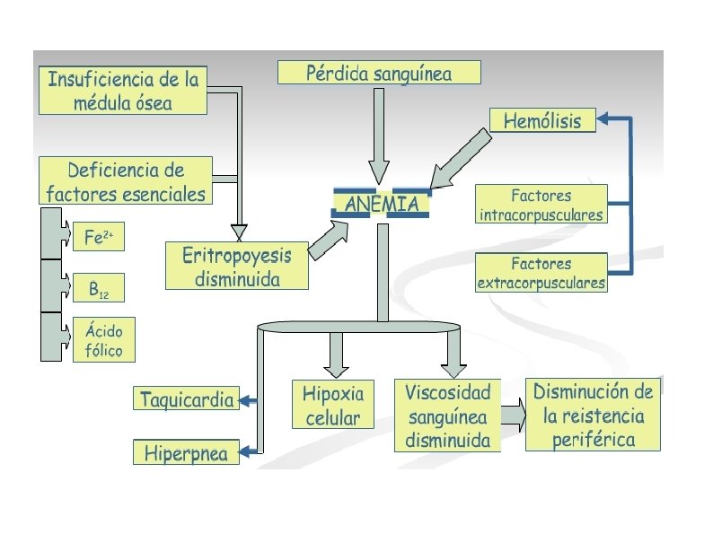 Manifestaciones clínicas: -Cansancio -Fatigabilidad -Debilidad muscular -Palidez -Disnea -Palpitaciones -Soplos funcionales -Insuficiencia cardíaca -Cefalea -Vértigo -Zumbido en oídos -Poca concentración -Anorexia -Amenorrea