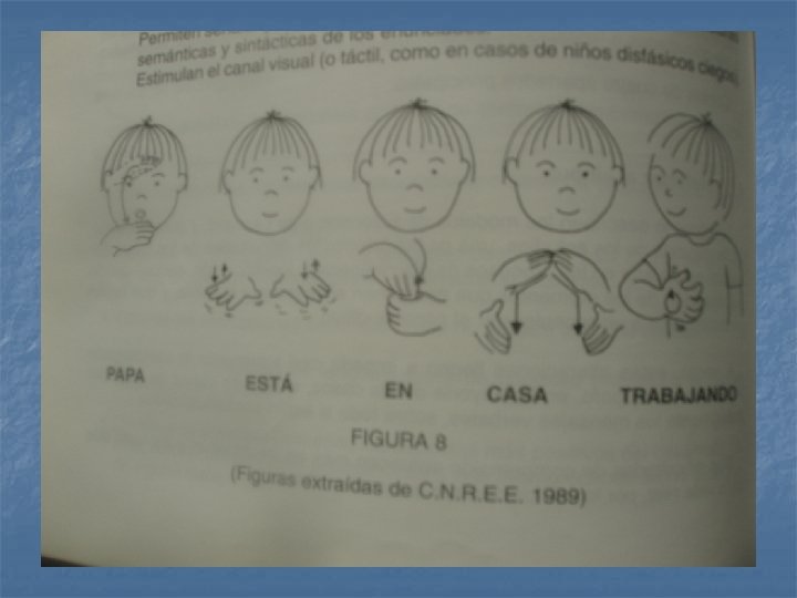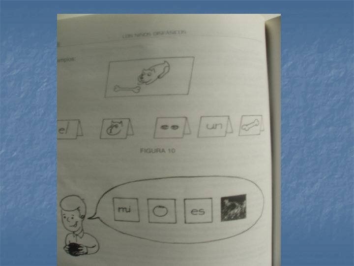 Dificultades y limitaciones n n 1. Generalización del sistema al conjunto de personas del entorno. 2. Expectativas erróneas ( confusiones entre lenguaje y comunicación ) 3. Metodología inadecuada ( entrenamiento formal y/o artificial ) 4. Limitación del nº de personas con las que se pueda comunicar ( limitación relativa )