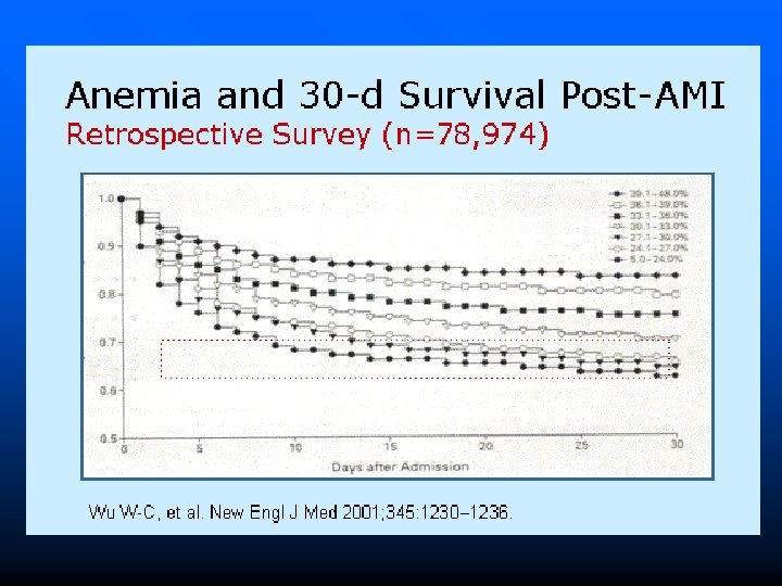 ESTUDIO MAR Supervivencia K-M por grupos (Hb inicial >12; 11 -12; 10 -11; <10) Log Rank=37. 48 p<0. 001 Prob. S. al año: 0, 76 vs 0, 82 vs 0, 89 vs 0, 92 Portolés et al 2004