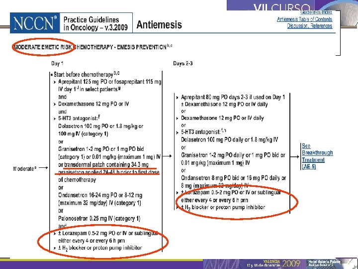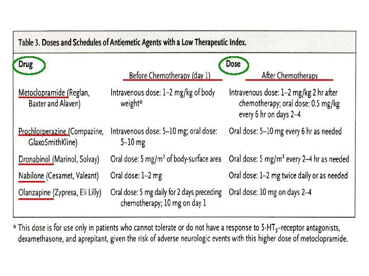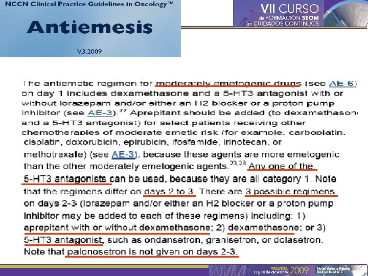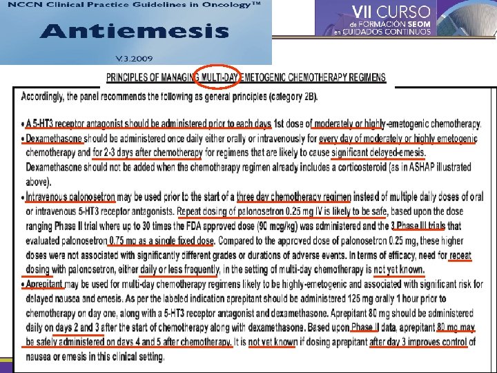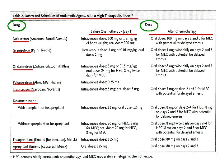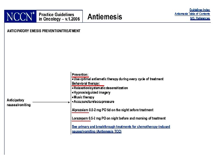 C o n s e c u e n c • • Complicaciones metabólicas Deterioro nutricional y anorexia Lesiones mecánicas (Mallory-Weiss…. ) Dehiscencia de heridas Efectos psíquicos indeseables Deterioro del estado general y calidad de vida Interrupción del tratamiento NCCN Practice Guidelines in Oncology–Version 1. 2007. Antiemesis, MS-1.