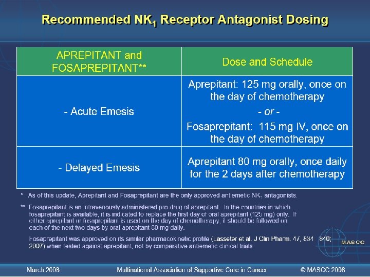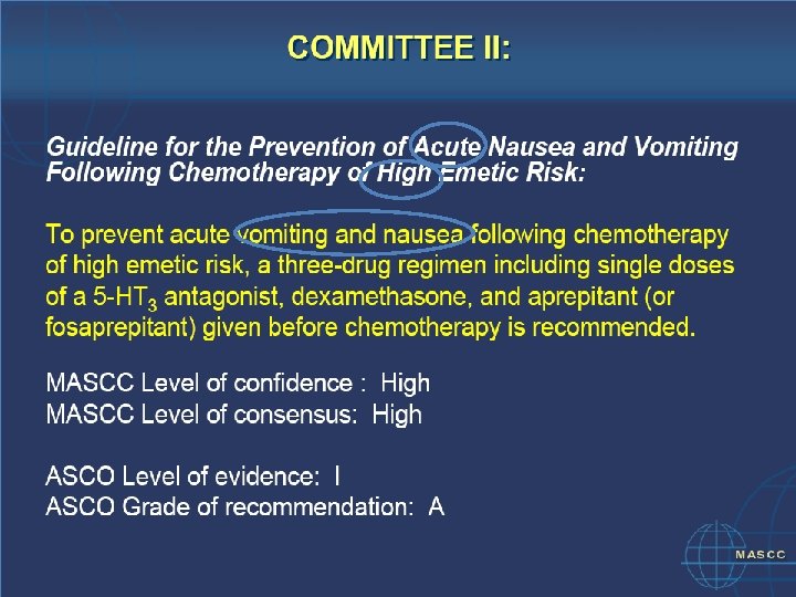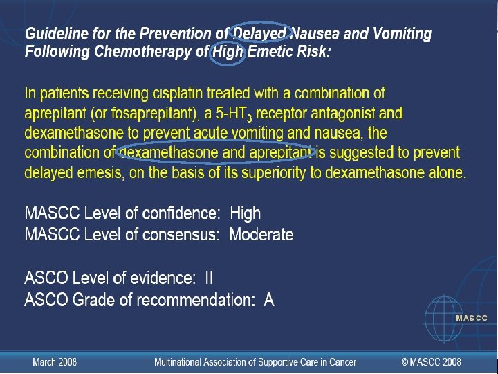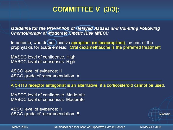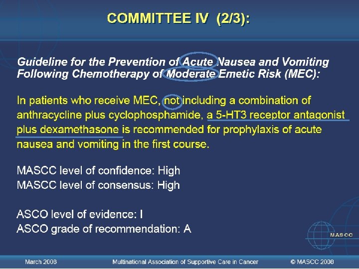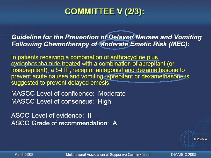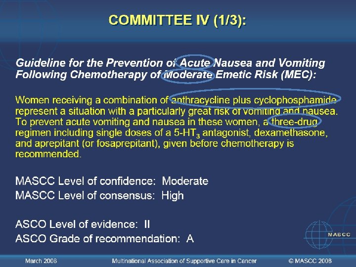 COMITÉ VIII : Nota: El mejor enfoque para la emesis anticipatoria es el mejor control posible de la emesis aguda y tardía December 2005 Multinational Association of Supportive Care in Cancer © MASCC 2007