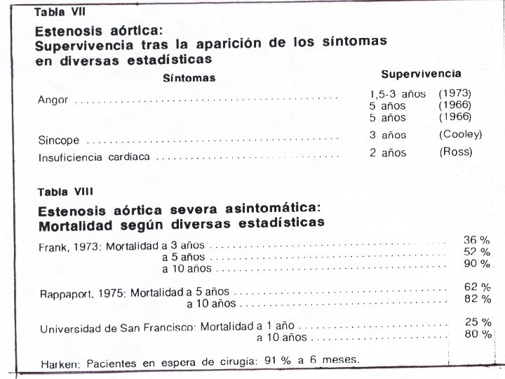 n n De estos pte el 87% mueren o desarrollan síntomas importantes en 6 años, el 48% en 2 años el 33% en 1 año. Los factores que se relacionan con la mortalidad son: insuficiencia cardiaca, dilatación cardiaca con ICT de 0. 60, la aparición de arritmias ventriculares y la presencia de signos electrocardiográficos de hipertrofia severa. Un factor de gran importancia para el pronostico es la etiología de la IAC. Mortalidad operatoria por reemplazo valvular A partir de 1975 y en los últimos años es de 4% e incluso menor.