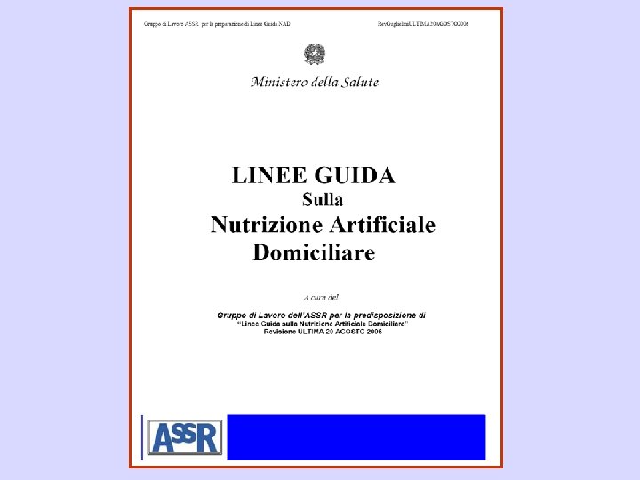 La Nutrizione Artificiale Domiciliare in Italia • Necessità di “percorsi specifici per patologia” che favoriscano un accesso omogeneo dei pazienti alla NAD e garantiscano: • prescrizione appropriata • erogazione adeguata • gestione sicura ed efficace