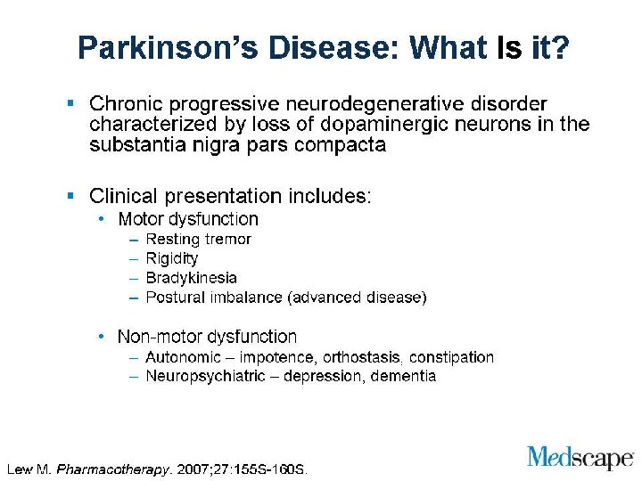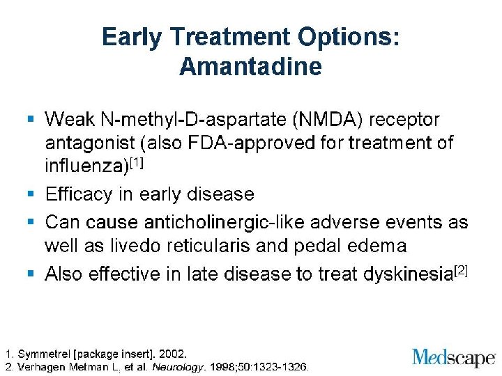 Novel Approaches • N-methyl-D-Aspartate (NMDA) Receptor Antagonists – Shown to reduce motor complications from LDOPA therapy – Amantadine (Symmetrel): http: //en. wikipedia. org/wiki/Amantadine