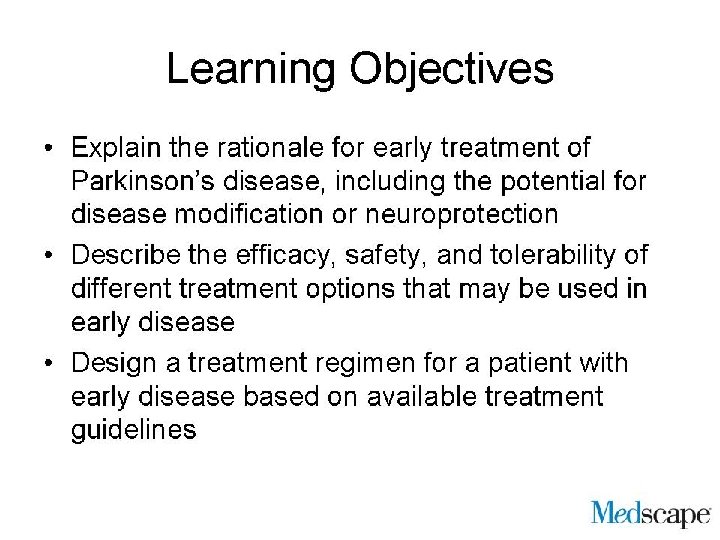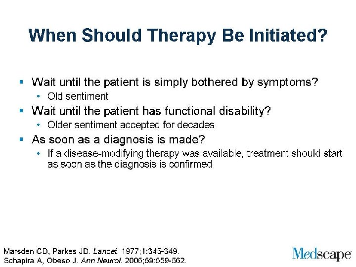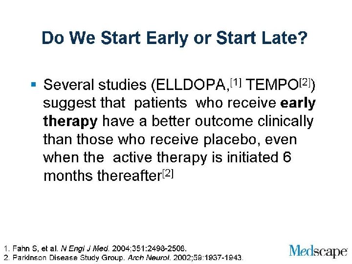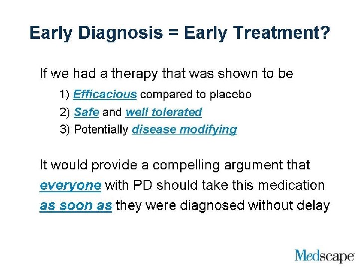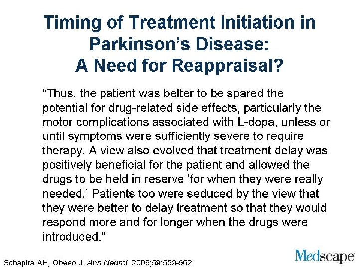 Trattamento precoce della Malattia di Parkinson: • Quando cominciare • Con che cosa cominciare • Perché