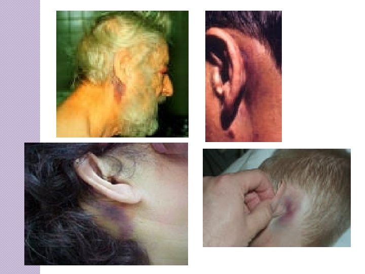 Lesões de couro cabeludo Abrasão Laceração Contusão Hematoma subgaleal – Bossa sanguinea Em criança pode ter perda significativa de sangue