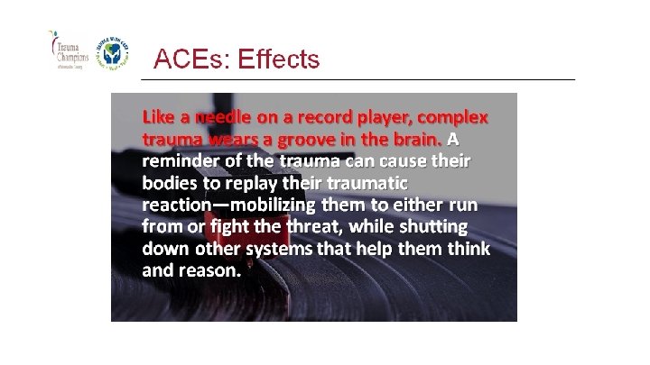 ACEs Trauma Informed GOAL: Fully engage participants by minimizing perceived threats, avoiding re-traumatization, and supporting recovery.