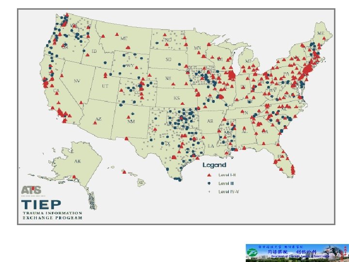 Elements of an Effective Trauma SYSTEM l Effective pre-hospital providers and protocols l Designated trauma centers (hospitals designated Level 1 -4) l Trained and available physician trauma specialists and nurses l Rehabilitation facilities l Trauma registry l Continuous quality improvement l Communication and coordination l Injury Prevention and Control programs