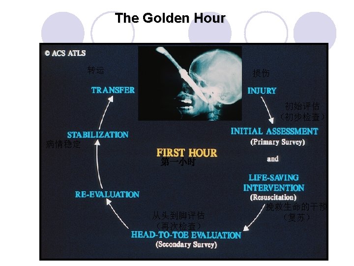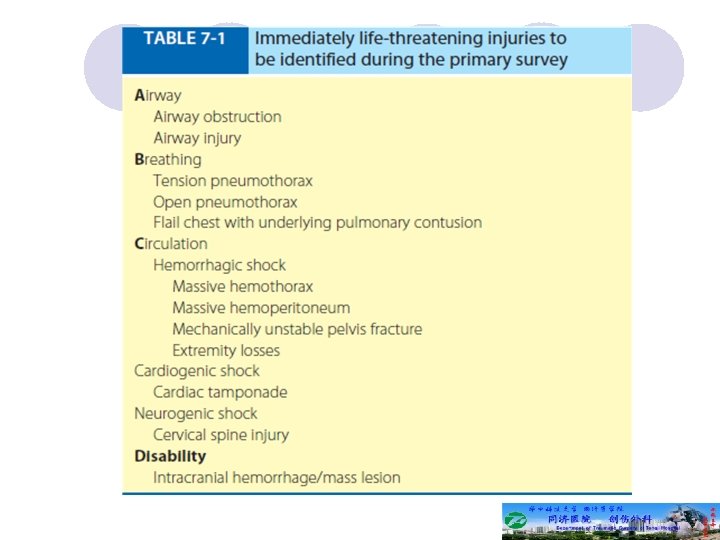 Secondary survey l Selective radiography: lateral cervical, chest and pelvic (big three) l Laboratory test: blood routine, Hg quantitation, WBC and differential, Plt, urine routine, etc.