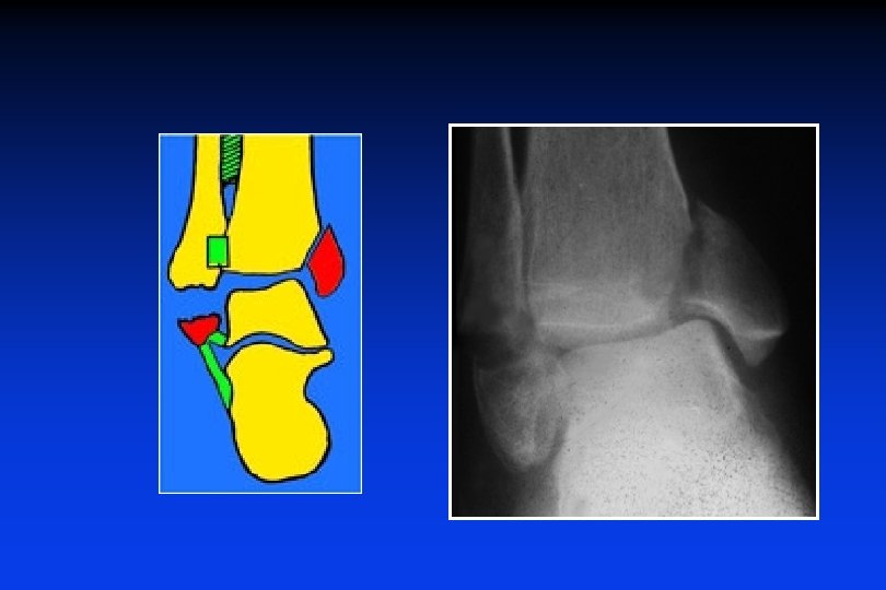 Ruttura del liamento P-T = fratture del insertione Fratture del malleolo posteriore (Destot)