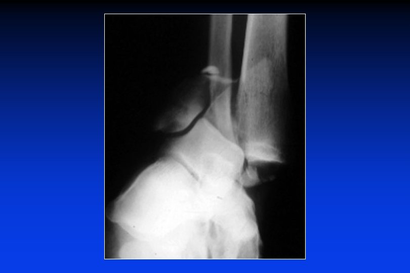 Fratture in flessione dorsale Le fratture marginali anteriori sono totali o parziali A volte, tutto il margine anteriore é fratturato, in blocco o in parecchi frammenti, determinando una sub-lussazione o una lussazione anteriore dell’astragalo in avanti.