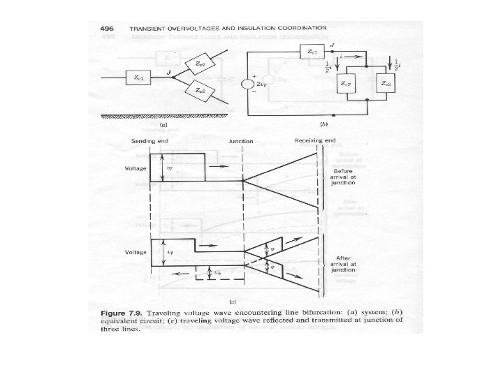 • Line is terminated with its characteristic impedance : – Z=Zc – =0, no reflection (infinitely long) • Z>Zc – vb is positive – Ib is negative – Reflected surges increased voltage and reduced current • Z<Zc – vb is negative – Ib is positive – Reflected surges reduced voltage and increased current • Zs and ZR are defined as the sending-end and receiving end. •