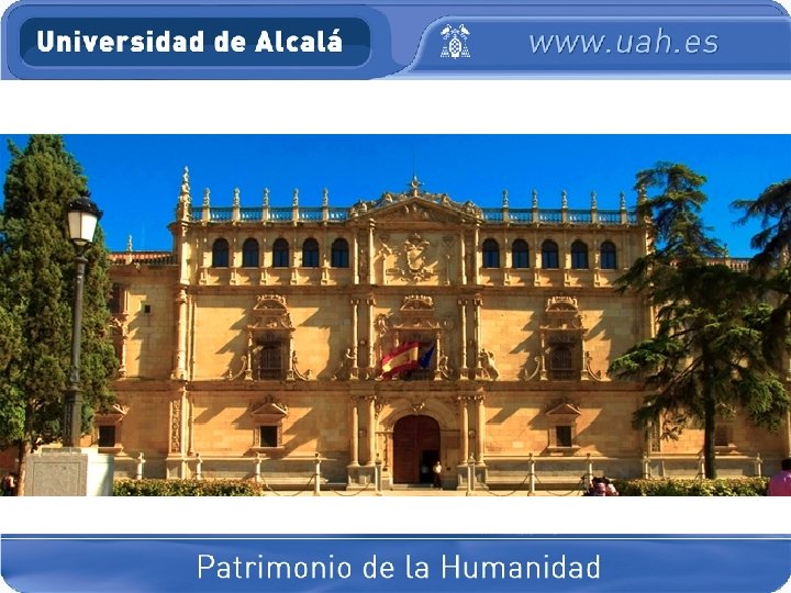 Conclusiones: La Universidad de Alcalá ofrece… Localización privilegiada • Ciudad de tamaño mediano y coste de vida moderado muy próxima a Madrid Magníficas instalaciones e infraestructuras • Centros de apoyo a estudiantes e investigadores • Posibilidad de realizar prácticas en empresas Amplia oferta de títulos de Grado y de Posgrado • Estudios en español y en inglés • Garantía de calidad mediante acreditación • Reconocimiento de las titulaciones en los países miembros del EEES • Precios de matrícula subvencionados Ambiente multicultural • 5. 500 estudiantes internacionales de 130 países