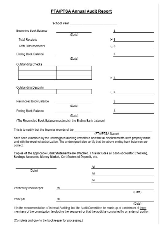 #4 Reporting is Important Outside School Related Organization Monthly Reports must be submitted to the school’s bookkeeper each month. � This is intended to be a reconciliation of your books with the monthly bank statement. � Include all transactions that occurred during the month. (Deposits, checks written during the month, etc. even if they have not cleared the bank. )