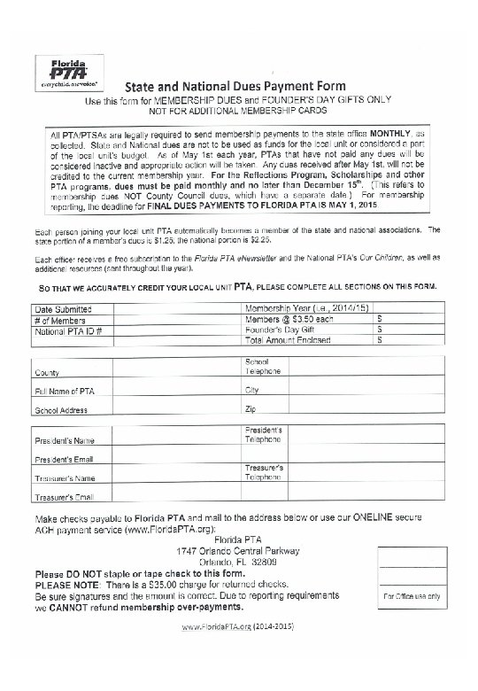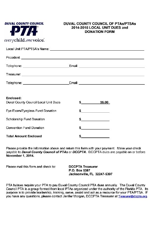 #9 Dues are important. State and National dues must be remitted to Florida PTA monthly ($3. 50 per member). Duval County Council dues are due November 1 ($35 per local unit).