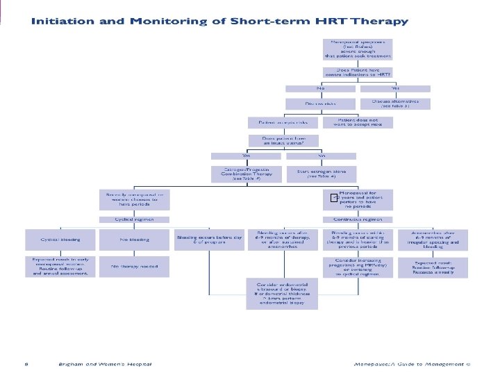 To Evaluate Risk/Benefit • Risks ▫ CVD ▫ Breast CA ▫ Endometrial CA ▫ VTE • Benefits ▫ Relief of vasomotor symptoms ▫ Protect from osteoporosis ▫ Protect from colon cancer ▫ Relief of mood disorder, vaginal dryness, incontinence, insomnia