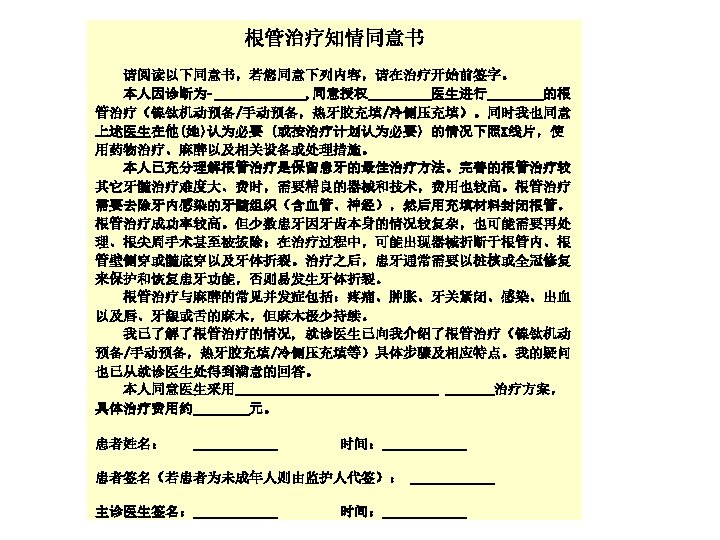2. Preparation for treatment • Infection control – Universal precautions (operatory preparation) – Instrument sterilization – Tooth isolation 患牙隔离 • Patient preparation – Informed consent 知情同意 – Pain control