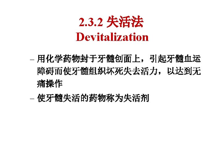 2. 3 Pain control • Local anesthesia • Divitalization 失活法