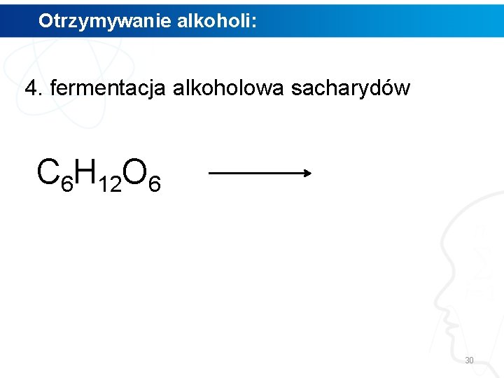 Otrzymywanie alkoholi: 4. fermentacja alkoholowa sacharydów C 6 H 12 O 6 30