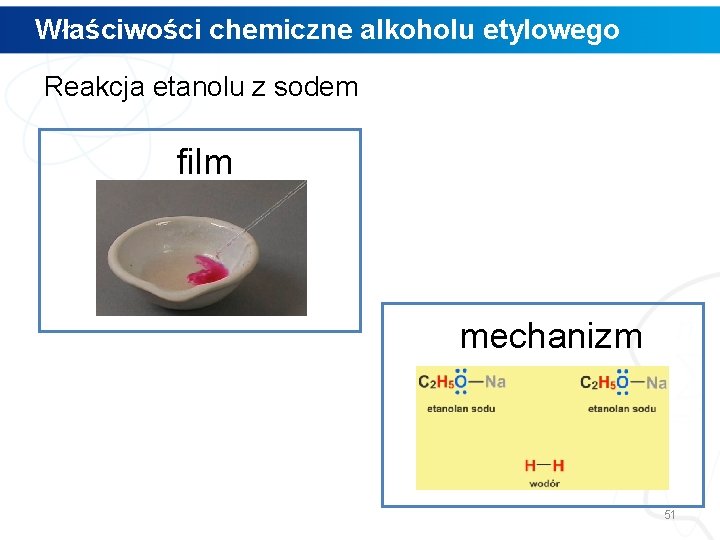 Właściwości chemiczne alkoholu etylowego Reakcja etanolu z sodem film mechanizm 51