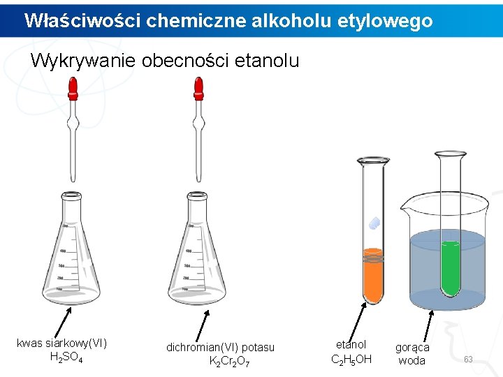 Właściwości chemiczne alkoholu etylowego Wykrywanie etanolu 62