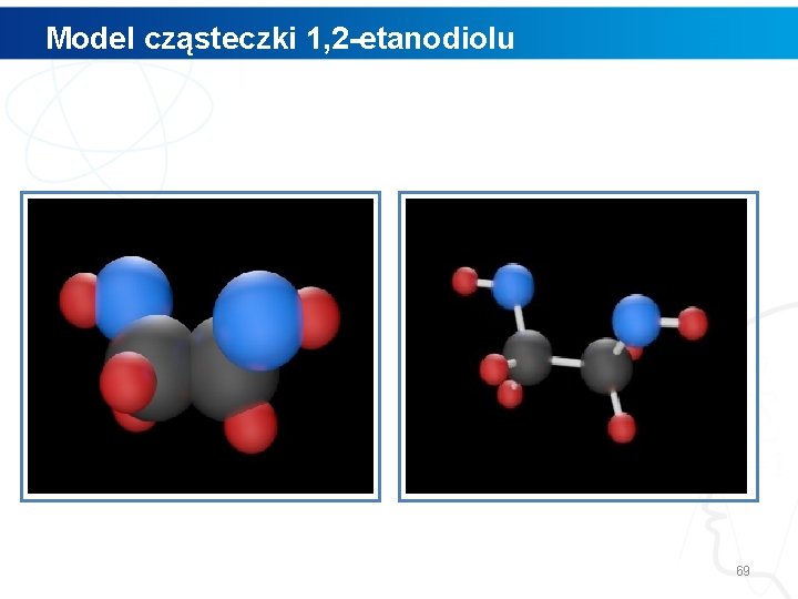 Alkohole polihydroksylowe GLIKOL ETYLENOWY § bezbarwna, gęsta ciecz, dobrze rozpuszczalna w wodzie i w alkoholu etylowym § związek silnie toksyczny § wykazuje dużą higroskopijność § otrzymywanie: np. hydroliza tlenku etylenu w środowisku kwasowym 68