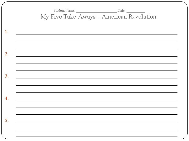 Student Name: ______________ Date: __________ American Revolution – Tree Map – Terms Dates of Era: Important Dates Important People Important Events/ Battles Important Documents/ Court Cases Important Academic Vocabulary