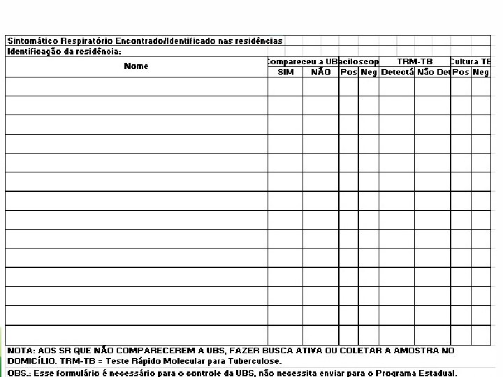 COMO É REALIZADA A PESQUISA DOS SINTOMÁTICOS RESPIRATÓRIOS? QUAIS OS FORMULÁRIOS UTILIZADOS? QUANTAS VEZES É REALIZADA NO ANO?