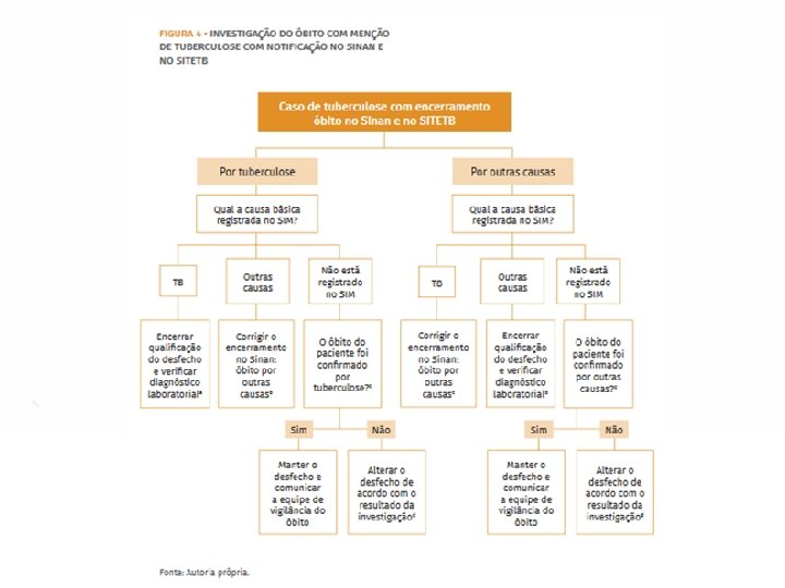 Notificação Mediante confirmação de um caso de tuberculose, a unidade de saúde (pública ou privada) que identifica o caso é responsável por sua notificação. Outros serviços também podem notificar o caso, como os laboratórios. Cabe ressaltar que, por Portaria Ministerial, a tuberculose é uma doença de notificação compulsória (Portaria no 204, de 17 de fevereiro de 2016).