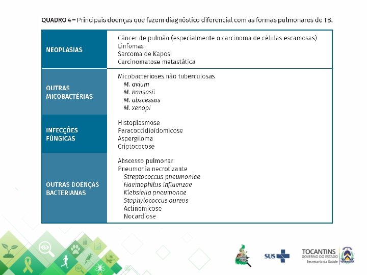 Coeficiente de Mortalidade por Tuberculose 2001 e 2017 (*) – Brasil e Tocantins (Ano do óbito) Pernambuco 4, 5/100. 000 Rio de Janeiro 4, 2/100. 000 Amazonas 3, 9/100. 000 3. 1 2. 2 Brasil reduziu 29, 03% Tocantins reduziu XXX% 0 2001 Brasil 2017 Tocantins Fonte: SIM/MS ; IBGE Fonte: SES-TO/SIM *Dados provisórios