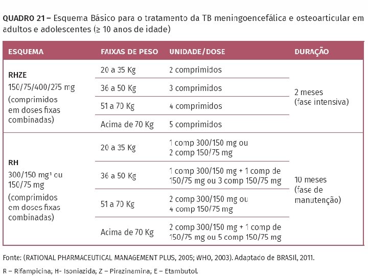 O Esquema Básico pode ser administrado nas doses habituais para gestantes e, dado risco de toxicidade neurológica ao feto atribuído à isoniazida, recomenda-se (50 mg/dia). o uso de piridoxina