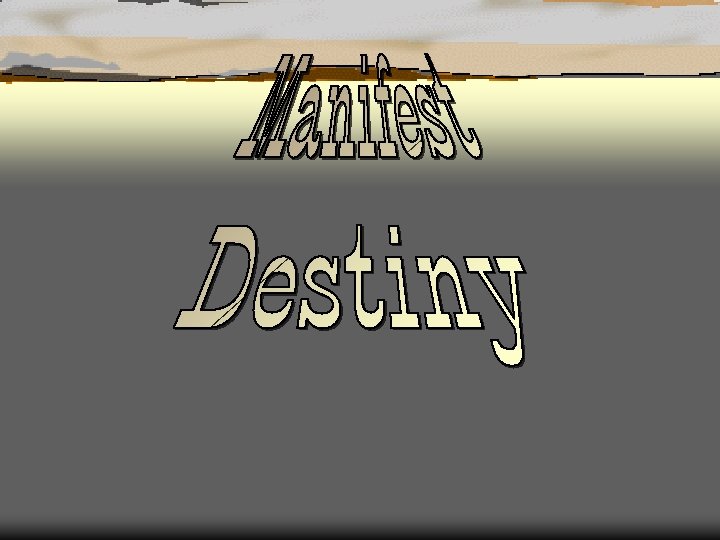“Manifest Destiny” § First coined by newspaper editor, John O’Sullivan in 1845. ". . the right of our manifest destiny to over spread and to possess the whole of the continent which Providence has given us for the development of the great experiment of liberty and federative development of self-government entrusted to us. It is right such as that of the tree to the space of air and the earth suitable for the full expansion of its principle and destiny of growth. " § A myth of the West as a land of romance and adventure emerged.