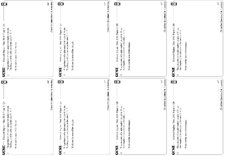 Triangle – Area – Higher – GCSE Questions These questions are the same format as previous GCSE exams. COPY means they use the exact same numbers as the original GCSE question. Otherwise, they are clone questions using different numbers. The worksheets are provided in a variety of sizes.