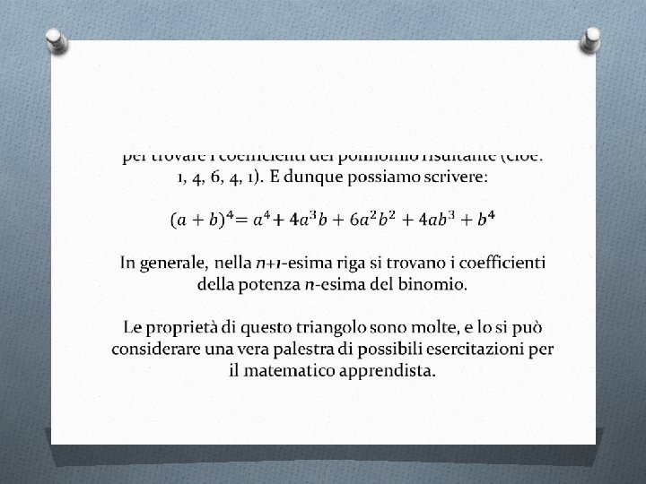 Ogni termine del triangolo è uguale alla somma di tutti i termini che lo precedono, nella colonna alla sua sinistra