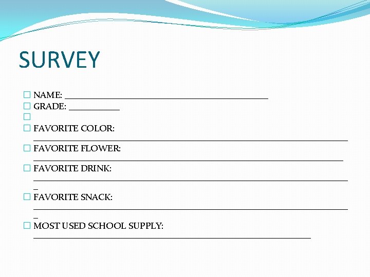 PLANNING…. �SURVEY �TO GATHER INFORMATION/IDEAS �DAILY GIFT FOR TEACHER FROM STUDENT