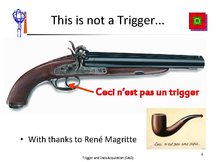 This is not a Trigger. . . Ceci n’est pas un trigger • With thanks to René Magritte Trigger and Data Acquisition (DAQ) 4