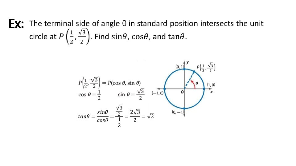 Angles in Standard Position • An angle on the coordinate plane is in standard position if the vertex is at the origin and one ray is on the positive x-axis