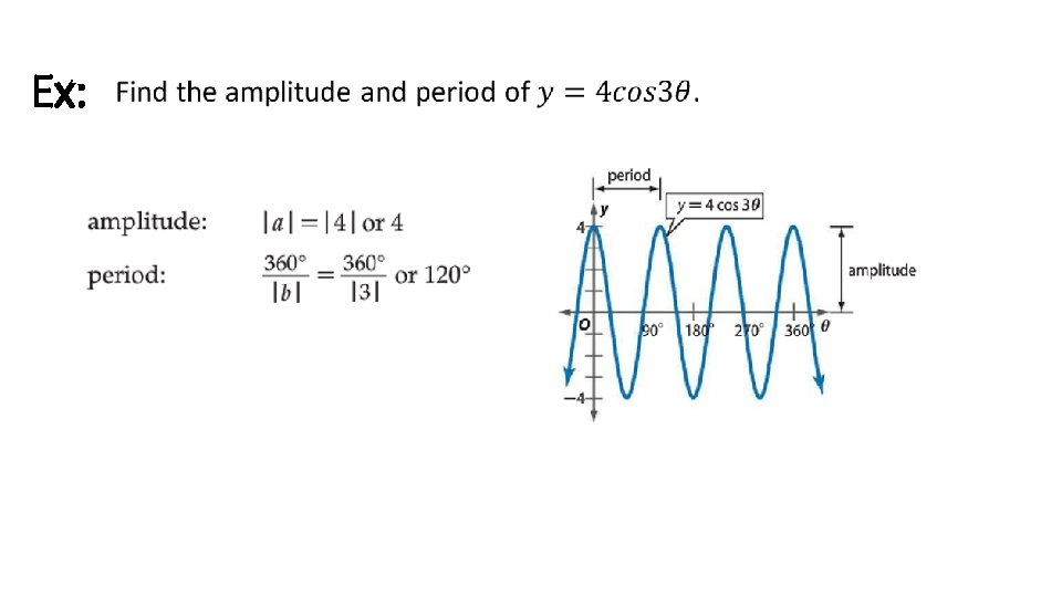 Ex: • The 5 main points come from the period: 0°, 90°, 180°, 270°, and 360° Remember the pattern for sine and you should figure out the shape. The 5 main points come from the period: 0°, 22. 5°, 45°, 67. 5°, and 90° Remember the pattern for cosine and you should figure out the shape.