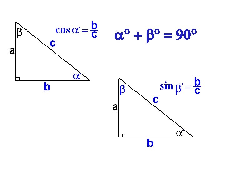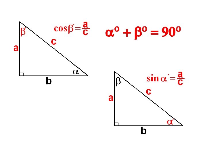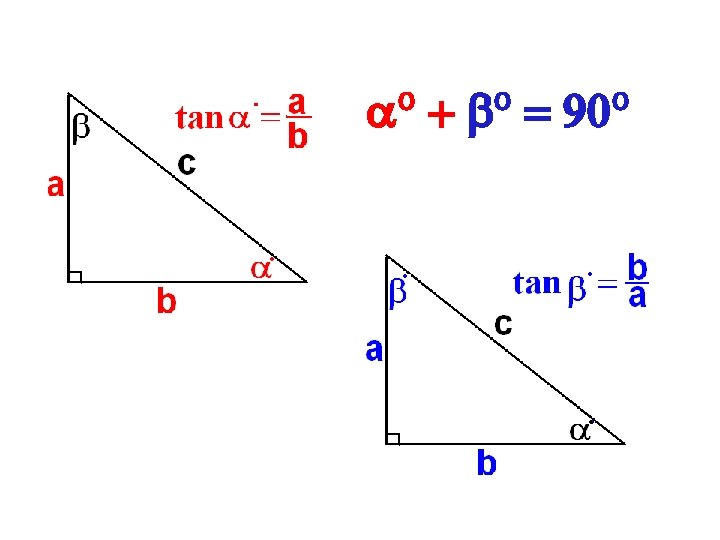 What are the angles? Remember, a + b = 90°