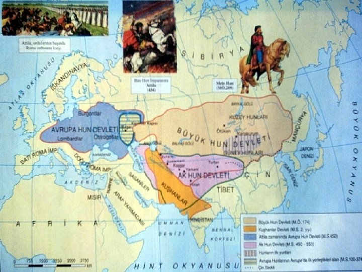 ü Büyük Hun Devleti M. S 50 yıllarında Çin’in baskıları sonucu parçalandı. Kuzey ve Güney Hun Devleti olmak üzere ikiye ayrıldı. ü Hunların büyük bir kısmı batıya göçerek Ural dağlarından batı Avrupa’ya kadar uzanan Avrupa Hun Devletini kurdular. ü Bu devletin en önemli hükümdarı Atilla’dır.
