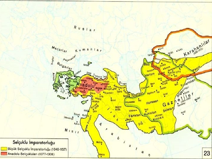 SELÇUKLULAR VE ANADOLU BEYLİKLERİ ü Gaznelilere karşı 1040 yılında Dandanakan Savaşı kazanılır ve Büyük Selçuklu Devleti kurulur. ü Tuğrul Bey, Abbasi Halifesini Şii baskısından kurtarır ve dünya sultanı ilan eder. ü Bu durum, Anadolu’nun kısa sürede Türkleşmesine ve Müslümanlaşmasına yardımcı olmuştur.