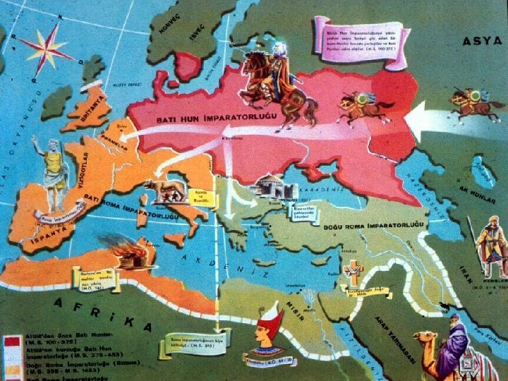 n. Avrupa Hun devleti kuruldu (Kurucu Balamir, en önemli hükümdarı Attila) n. Batı Roma İmparatorluğu 476 yılında yıkıldı. nİlkçağ bitti Ortaçağ başladı.